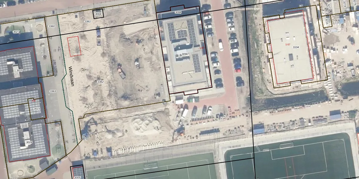 Het perceel waarop Windvaan 31 staat heeft een oppervlakte van 1037 m². Dit is een zeer groot perceel. De perceeloppervlakte wordt geregistreerd door het Kadaster. Gedetailleerde informatie over de maten van dit perceel kunt u vinden in het rapport Kadastrale kaart met maatvoering van Windvaan 31.