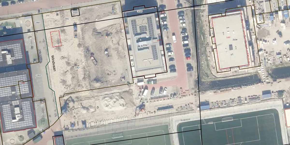 Het perceel waarop Windvaan 51 staat heeft een oppervlakte van 1037 m². Dit is een zeer groot perceel. De perceeloppervlakte wordt geregistreerd door het Kadaster. Gedetailleerde informatie over de maten van dit perceel kunt u vinden in het rapport Kadastrale kaart met maatvoering van Windvaan 51.