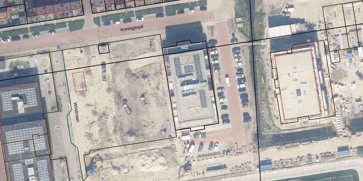 Het perceel waarop Windvaan 55 staat heeft een oppervlakte van 1037 m². Dit is een zeer groot perceel. De perceeloppervlakte wordt geregistreerd door het Kadaster. Gedetailleerde informatie over de maten van dit perceel kunt u vinden in het rapport Kadastrale kaart met maatvoering van Windvaan 55.