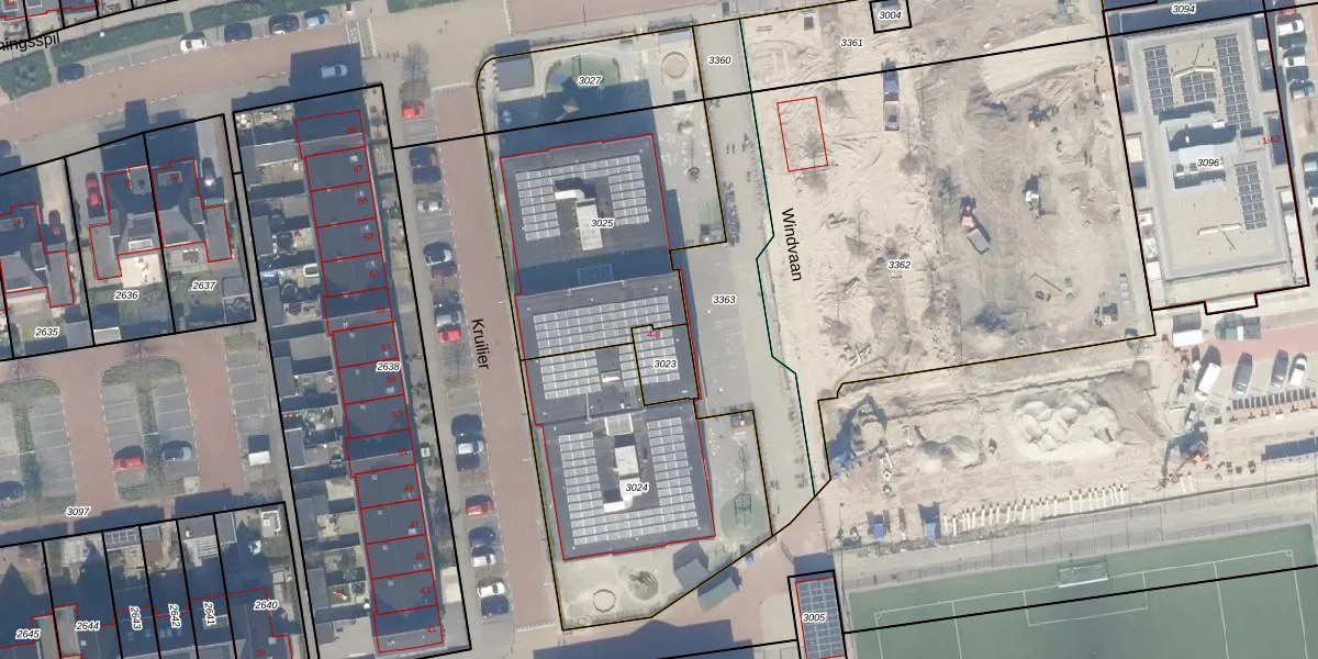 Het perceel waarop Windvaan 6 staat heeft een oppervlakte van 91 m². Dit is een klein perceel. De perceeloppervlakte wordt geregistreerd door het Kadaster. Gedetailleerde informatie over de maten van dit perceel kunt u vinden in het rapport Kadastrale kaart met maatvoering van Windvaan 6.
