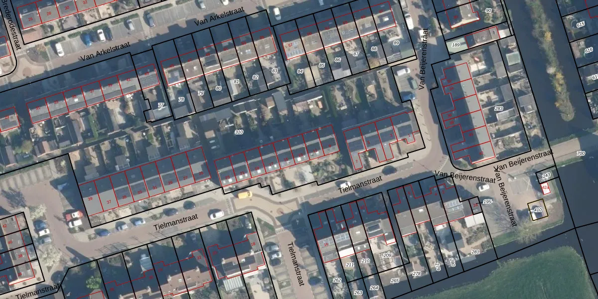 Het perceel waarop Tielmanstraat 13 staat heeft een oppervlakte van 4970 m². Dit is een zeer groot perceel. De perceeloppervlakte wordt geregistreerd door het Kadaster. Gedetailleerde informatie over de maten van dit perceel kunt u vinden in het rapport Kadastrale kaart met maatvoering van Tielmanstraat 13.