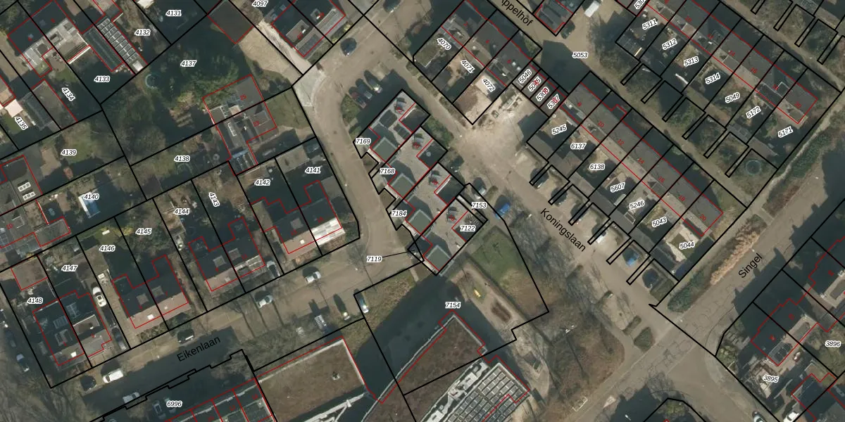Gebruik de zoekbalk of klik op een perceel voor informatie over de adressen binnen dit perceel.