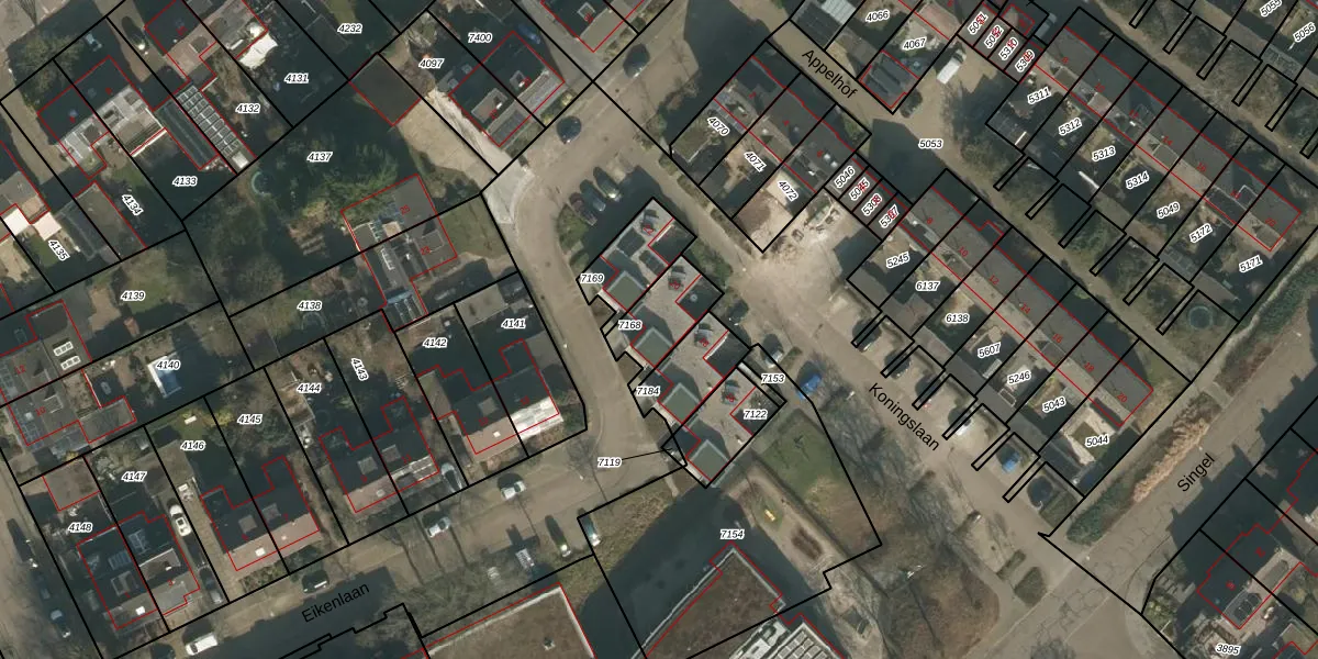 Gebruik de zoekbalk of klik op een perceel voor informatie over de adressen binnen dit perceel.
