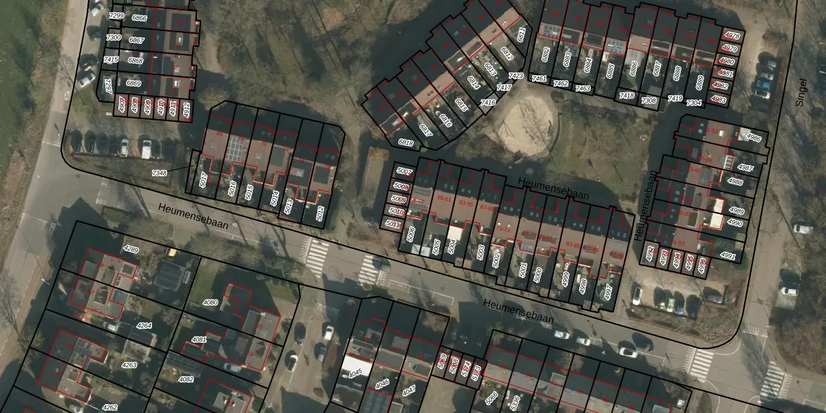 Het perceel waarop Heumensebaan 55 staat heeft een oppervlakte van 126 m². Dit is een middelgroot perceel. De perceeloppervlakte wordt geregistreerd door het Kadaster. Gedetailleerde informatie over de maten van dit perceel kunt u vinden in het rapport Kadastrale kaart met maatvoering van Heumensebaan 55.