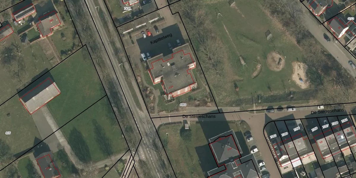 Kapittelweg 6 is gelegen op kadastraal perceel MOO00A6993. Deze kadastrale aanduiding is uniek en wordt gebruikt door het Kadaster om eigendomsrechten en andere zakelijke rechten vast te leggen. Het perceel maakt onderdeel uit van de kadastrale gemeente Mook en Middelaar.