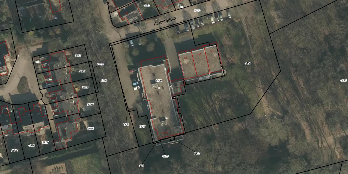 Het perceel waarop Kloostertuin 31 staat heeft een oppervlakte van 2440 m². Dit is een zeer groot perceel. De perceeloppervlakte wordt geregistreerd door het Kadaster. Gedetailleerde informatie over de maten van dit perceel kunt u vinden in het rapport Kadastrale kaart met maatvoering van Kloostertuin 31.