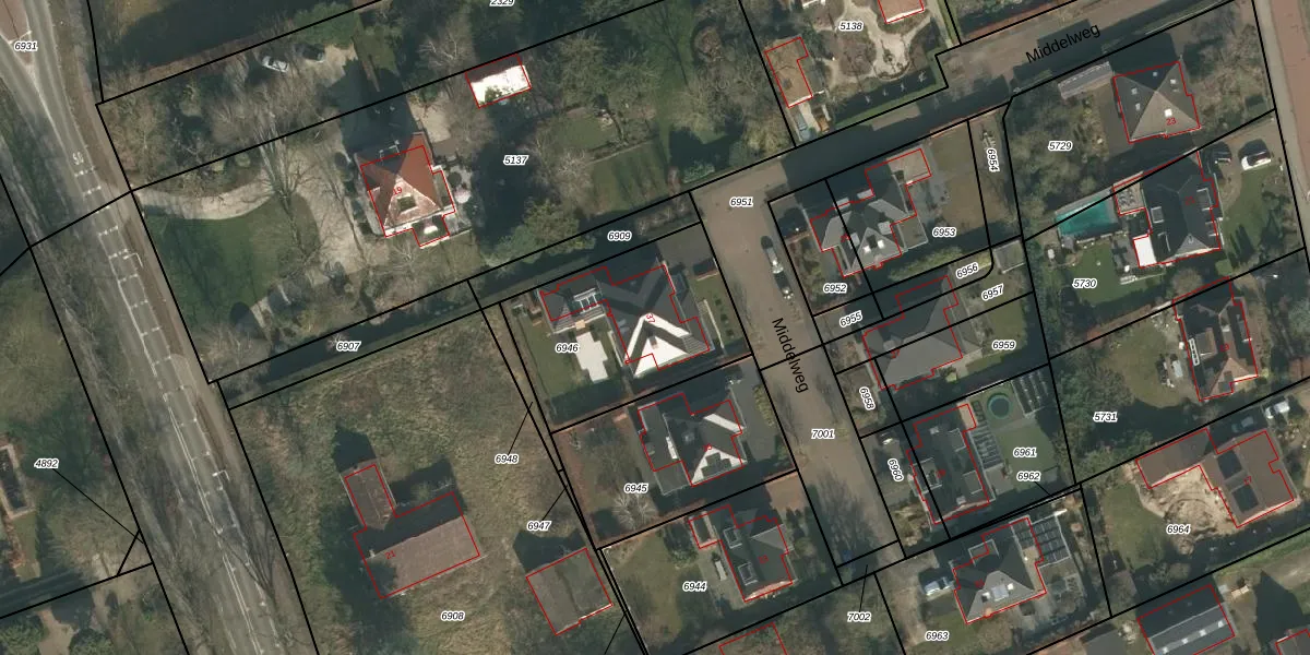 Het perceel waarop Middelweg 37 staat heeft een oppervlakte van 720 m². Dit is een groot perceel. De perceeloppervlakte wordt geregistreerd door het Kadaster. Gedetailleerde informatie over de maten van dit perceel kunt u vinden in het rapport Kadastrale kaart met maatvoering van Middelweg 37.
