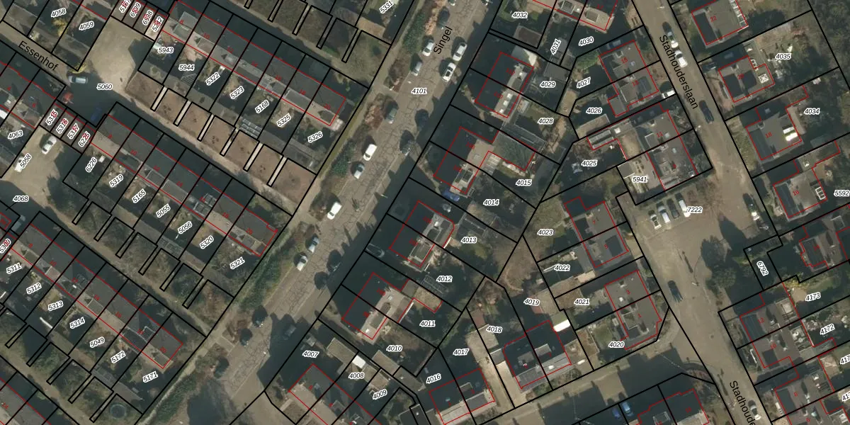 Het perceel waarop Singel 104 staat heeft een oppervlakte van 310 m². Dit is een groot perceel. De perceeloppervlakte wordt geregistreerd door het Kadaster. Gedetailleerde informatie over de maten van dit perceel kunt u vinden in het rapport Kadastrale kaart met maatvoering van Singel 104.