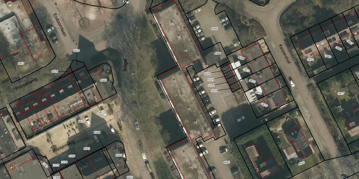 Het perceel waarop Singel 37 staat heeft een oppervlakte van 2173 m². Dit is een zeer groot perceel. De perceeloppervlakte wordt geregistreerd door het Kadaster. Gedetailleerde informatie over de maten van dit perceel kunt u vinden in het rapport Kadastrale kaart met maatvoering van Singel 37.