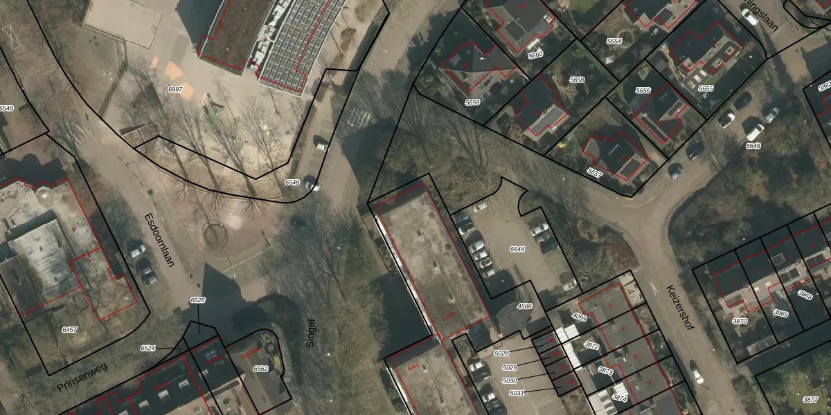 Het perceel waarop Singel 56 staat heeft een oppervlakte van 2173 m². Dit is een zeer groot perceel. De perceeloppervlakte wordt geregistreerd door het Kadaster. Gedetailleerde informatie over de maten van dit perceel kunt u vinden in het rapport Kadastrale kaart met maatvoering van Singel 56.