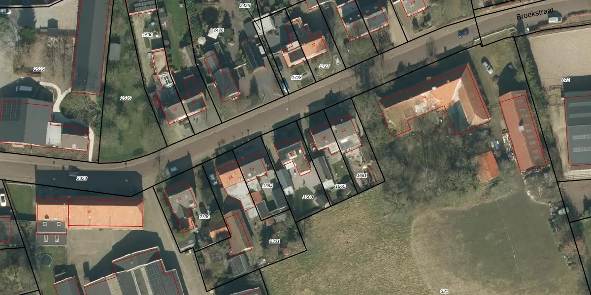 Het perceel waarop Broekstraat 18 staat heeft een oppervlakte van 410 m². Dit is een groot perceel. De perceeloppervlakte wordt geregistreerd door het Kadaster. Gedetailleerde informatie over de maten van dit perceel kunt u vinden in het rapport Kadastrale kaart met maatvoering van Broekstraat 18.