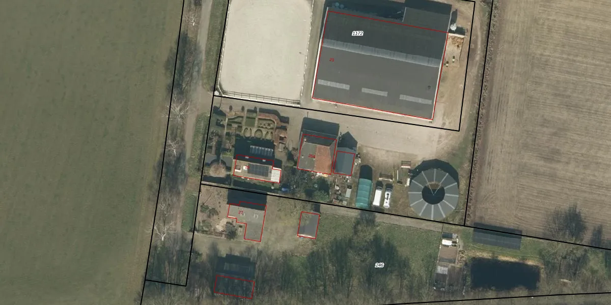 Het perceel waarop Donkstraat 25-A staat heeft een oppervlakte van 7830 m². Dit is een zeer groot perceel. De perceeloppervlakte wordt geregistreerd door het Kadaster. Gedetailleerde informatie over de maten van dit perceel kunt u vinden in het rapport Kadastrale kaart met maatvoering van Donkstraat 25-A.