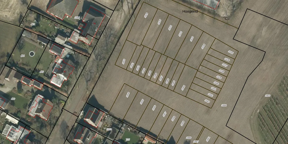 Het perceel waarop Hoogeind 7 staat heeft een oppervlakte van 92 m². Dit is een klein perceel. De perceeloppervlakte wordt geregistreerd door het Kadaster. Gedetailleerde informatie over de maten van dit perceel kunt u vinden in het rapport Kadastrale kaart met maatvoering van Hoogeind 7.