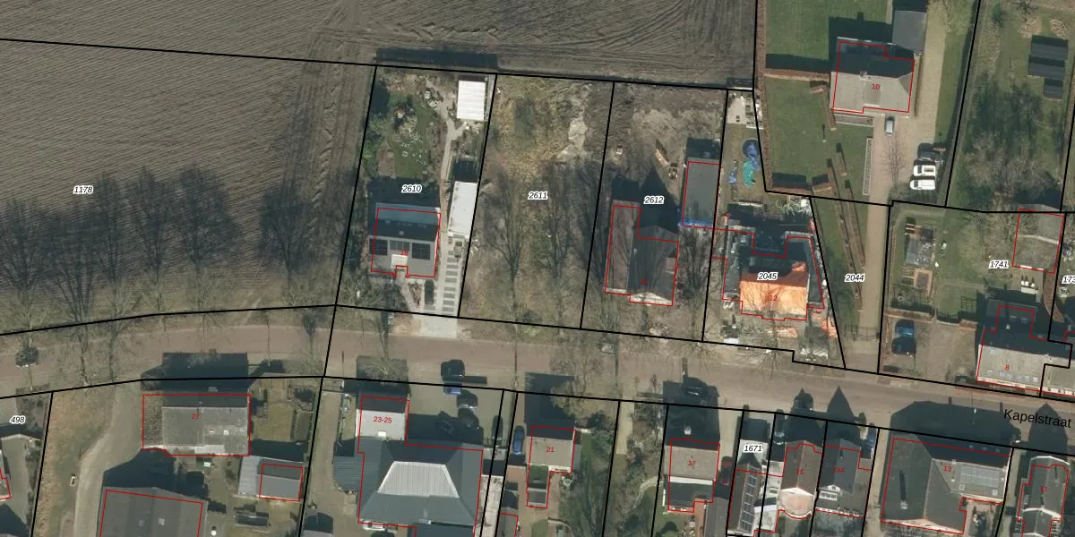 Het perceel waarop Kapelstraat 16 staat heeft een oppervlakte van 1030 m². Dit is een zeer groot perceel. De perceeloppervlakte wordt geregistreerd door het Kadaster. Gedetailleerde informatie over de maten van dit perceel kunt u vinden in het rapport Kadastrale kaart met maatvoering van Kapelstraat 16.