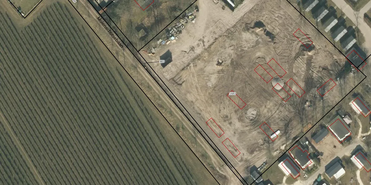 Het perceel waarop Molenschotsebaan 21-e83 staat heeft een oppervlakte van 7520 m². Dit is een zeer groot perceel. De perceeloppervlakte wordt geregistreerd door het Kadaster. Gedetailleerde informatie over de maten van dit perceel kunt u vinden in het rapport Kadastrale kaart met maatvoering van Molenschotsebaan 21-e83.