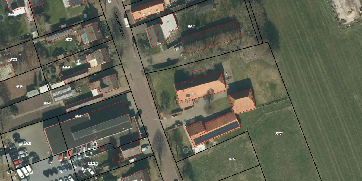 Schoolstraat 27 is gelegen op kadastraal perceel GZE00H2295. Deze kadastrale aanduiding is uniek en wordt gebruikt door het Kadaster om eigendomsrechten en andere zakelijke rechten vast te leggen. Het perceel maakt onderdeel uit van de kadastrale gemeente Gilze en Rijen.