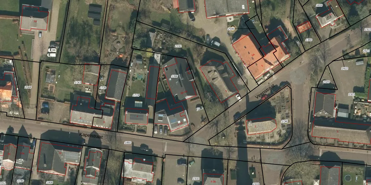 Het perceel waarop Veenstraat 1-H staat heeft een oppervlakte van 1005 m². Dit is een zeer groot perceel. De perceeloppervlakte wordt geregistreerd door het Kadaster. Gedetailleerde informatie over de maten van dit perceel kunt u vinden in het rapport Kadastrale kaart met maatvoering van Veenstraat 1-H.