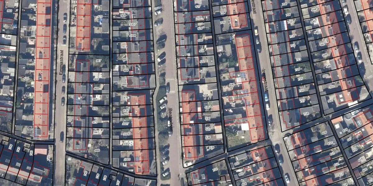Het perceel waarop Beatrixlaan 18 staat heeft een oppervlakte van 196 m². Dit is een middelgroot perceel. De perceeloppervlakte wordt geregistreerd door het Kadaster. Gedetailleerde informatie over de maten van dit perceel kunt u vinden in het rapport Kadastrale kaart met maatvoering van Beatrixlaan 18.
