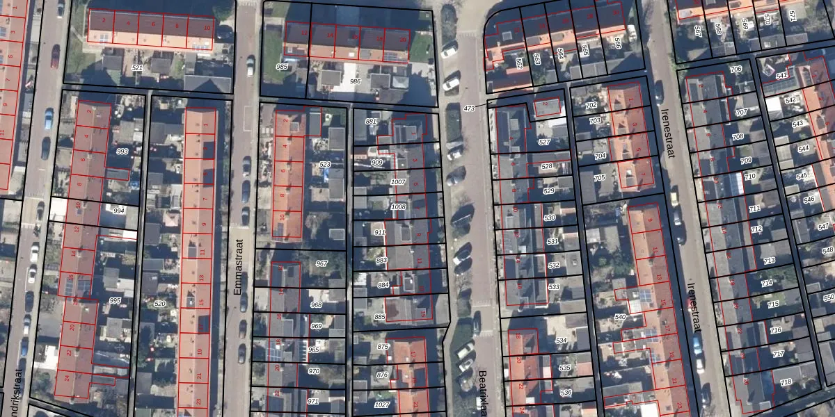 Gebruik de zoekbalk of klik op een perceel voor informatie over de adressen binnen dit perceel.