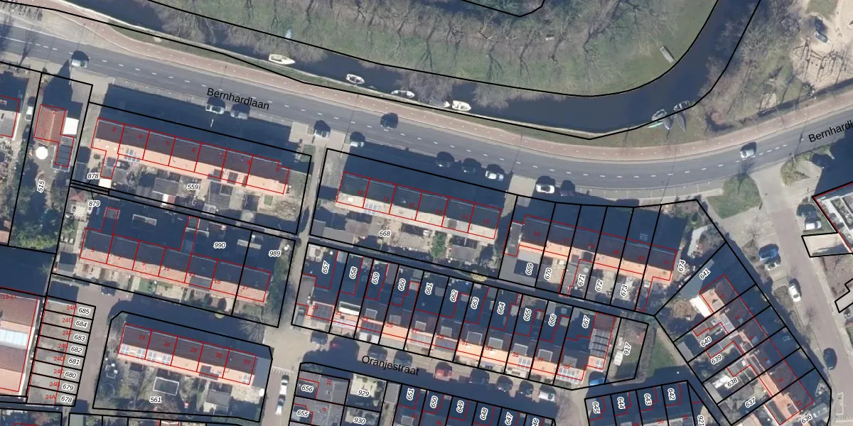 Het perceel waarop Bernhardlaan 13 staat heeft een oppervlakte van 932 m². Dit is een groot perceel. De perceeloppervlakte wordt geregistreerd door het Kadaster. Gedetailleerde informatie over de maten van dit perceel kunt u vinden in het rapport Kadastrale kaart met maatvoering van Bernhardlaan 13.
