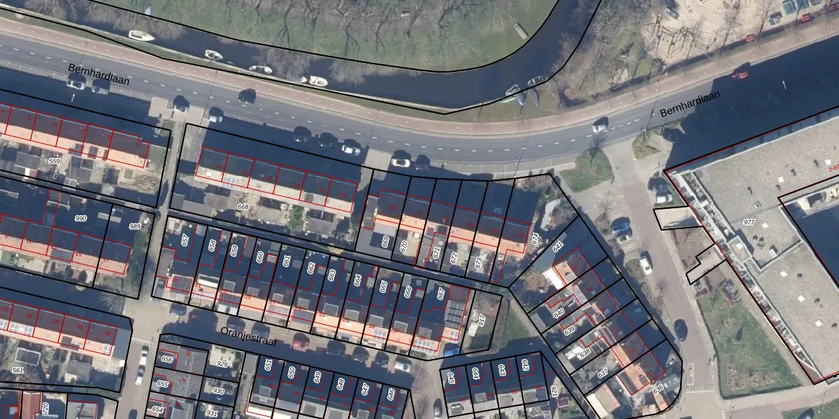 Gebruik de zoekbalk of klik op een perceel voor informatie over de adressen binnen dit perceel.