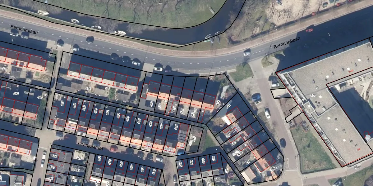 Gebruik de zoekbalk of klik op een perceel voor informatie over de adressen binnen dit perceel.