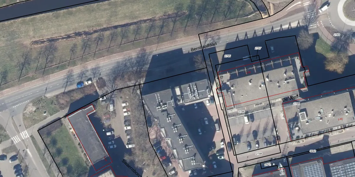 Het perceel waarop Bernhardlaan 36 staat heeft een oppervlakte van 2337 m². Dit is een zeer groot perceel. De perceeloppervlakte wordt geregistreerd door het Kadaster. Gedetailleerde informatie over de maten van dit perceel kunt u vinden in het rapport Kadastrale kaart met maatvoering van Bernhardlaan 36.