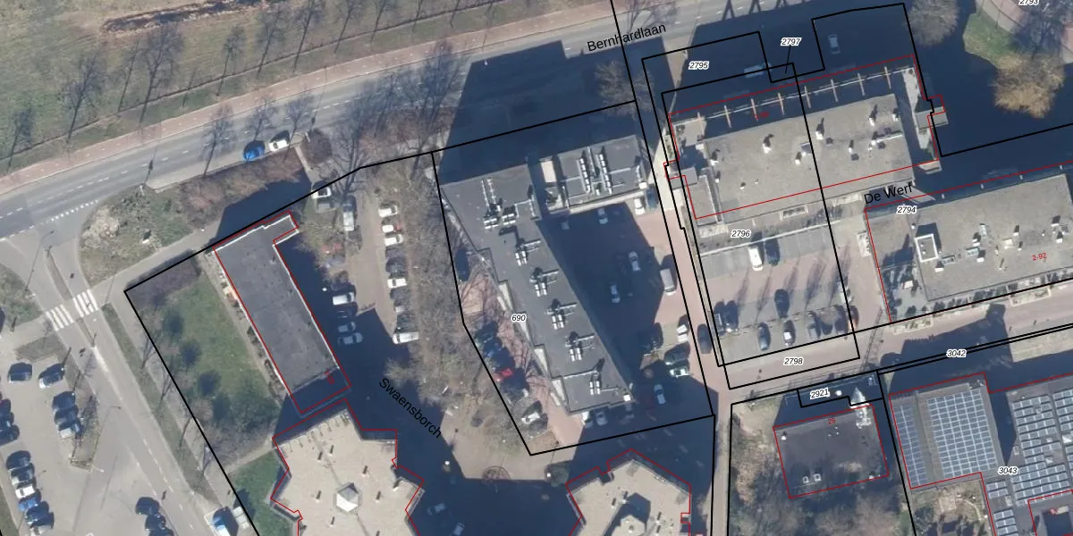 Het perceel waarop Bernhardlaan 60 staat heeft een oppervlakte van 2337 m². Dit is een zeer groot perceel. De perceeloppervlakte wordt geregistreerd door het Kadaster. Gedetailleerde informatie over de maten van dit perceel kunt u vinden in het rapport Kadastrale kaart met maatvoering van Bernhardlaan 60.