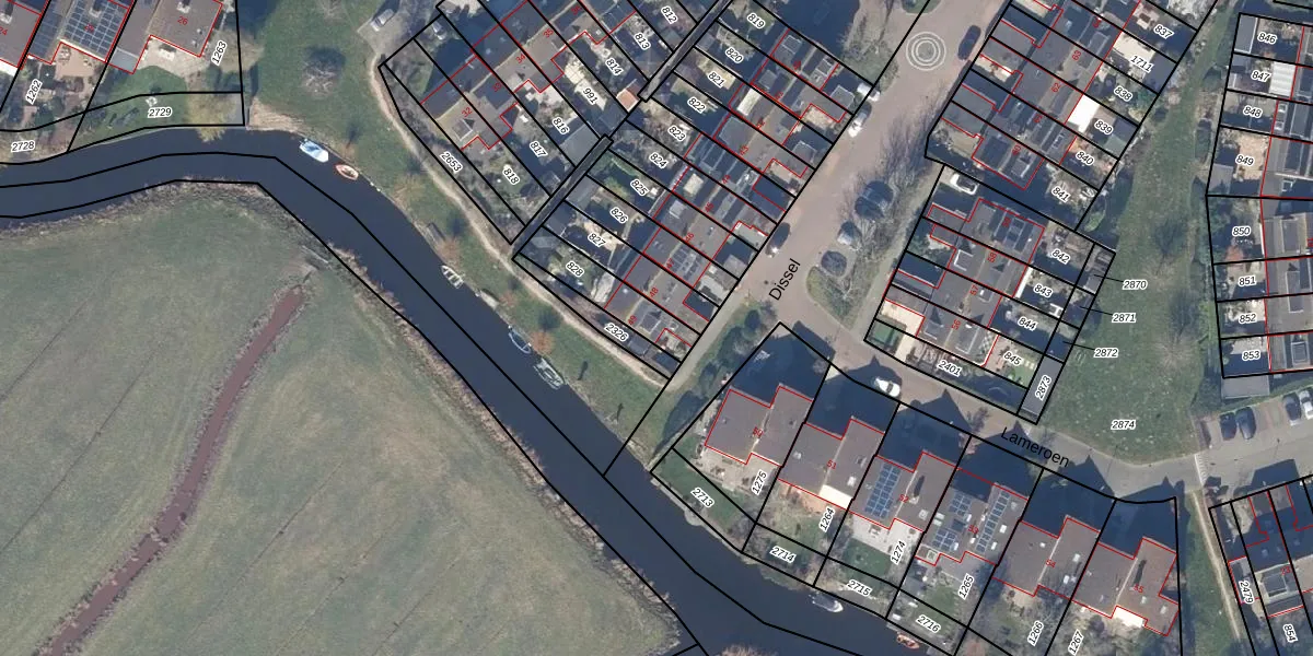 Het perceel waarop Dissel 49 staat heeft een oppervlakte van 159 m². Dit is een middelgroot perceel. De perceeloppervlakte wordt geregistreerd door het Kadaster. Gedetailleerde informatie over de maten van dit perceel kunt u vinden in het rapport Kadastrale kaart met maatvoering van Dissel 49.