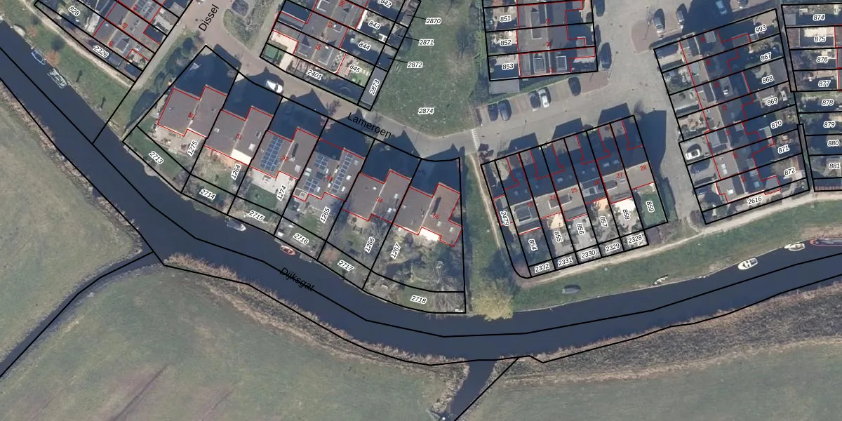 Het perceel waarop Dissel 55 staat heeft een oppervlakte van 503 m². Dit is een groot perceel. De perceeloppervlakte wordt geregistreerd door het Kadaster. Gedetailleerde informatie over de maten van dit perceel kunt u vinden in het rapport Kadastrale kaart met maatvoering van Dissel 55.