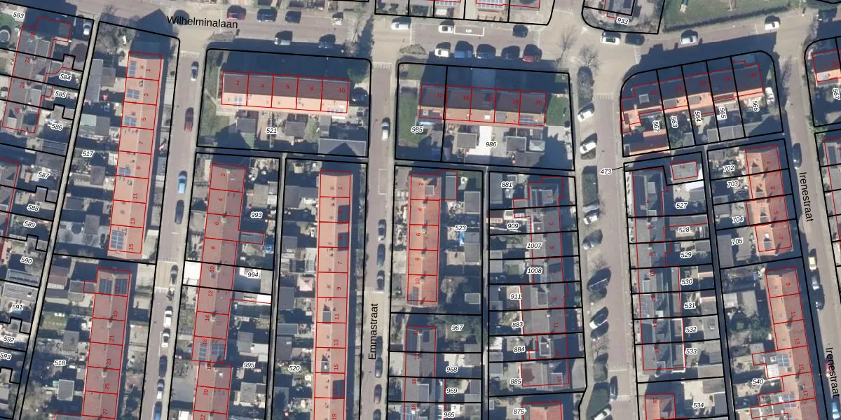 Het perceel waarop Emmastraat 4 staat heeft een oppervlakte van 733 m². Dit is een groot perceel. De perceeloppervlakte wordt geregistreerd door het Kadaster. Gedetailleerde informatie over de maten van dit perceel kunt u vinden in het rapport Kadastrale kaart met maatvoering van Emmastraat 4.