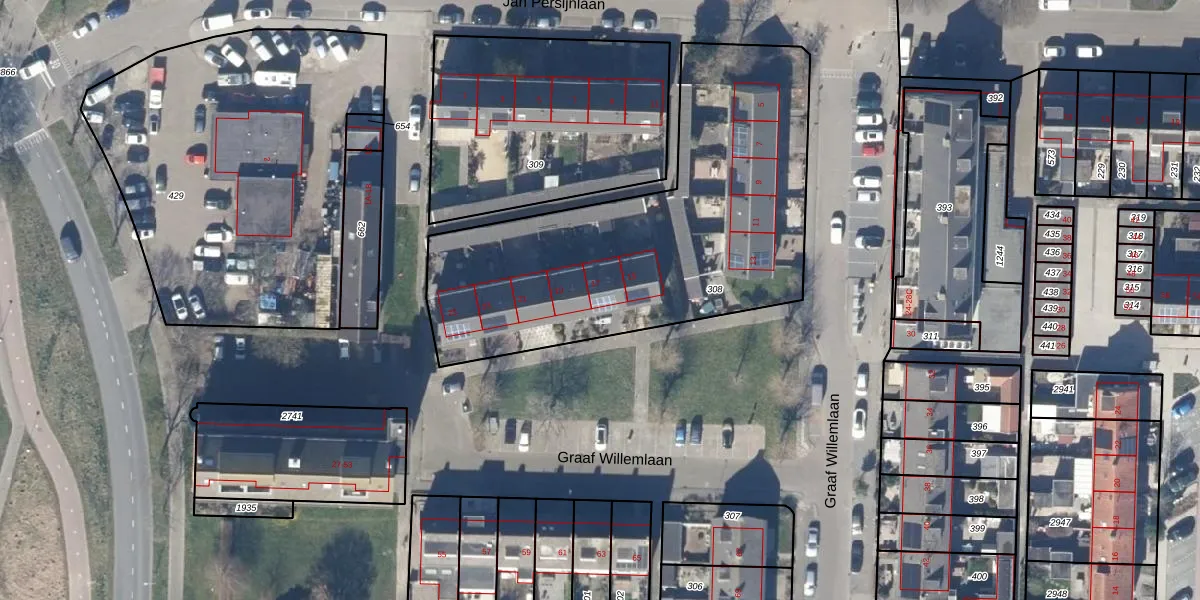 Het perceel waarop Graaf Willemlaan 17 staat heeft een oppervlakte van 1865 m². Dit is een zeer groot perceel. De perceeloppervlakte wordt geregistreerd door het Kadaster. Gedetailleerde informatie over de maten van dit perceel kunt u vinden in het rapport Kadastrale kaart met maatvoering van Graaf Willemlaan 17.