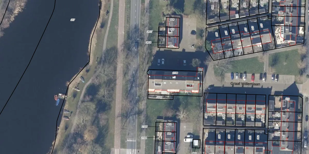 Het perceel waarop Graaf Willemlaan 197 staat heeft een oppervlakte van 565 m². Dit is een groot perceel. De perceeloppervlakte wordt geregistreerd door het Kadaster. Gedetailleerde informatie over de maten van dit perceel kunt u vinden in het rapport Kadastrale kaart met maatvoering van Graaf Willemlaan 197.