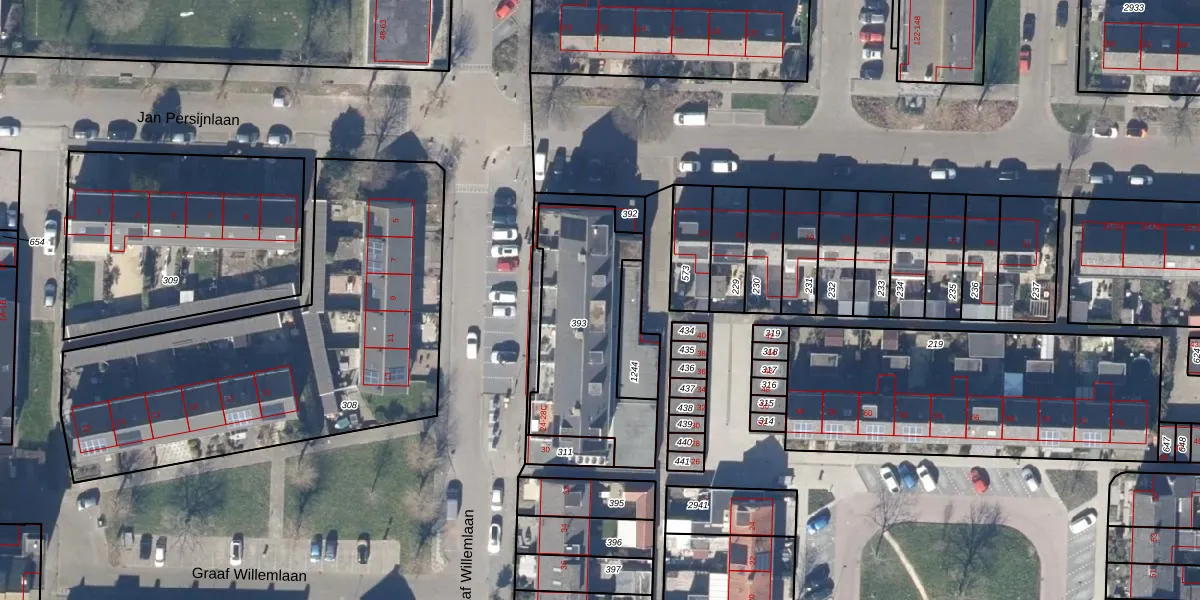 Het perceel waarop Graaf Willemlaan 26-C staat heeft een oppervlakte van 608 m². Dit is een groot perceel. De perceeloppervlakte wordt geregistreerd door het Kadaster. Gedetailleerde informatie over de maten van dit perceel kunt u vinden in het rapport Kadastrale kaart met maatvoering van Graaf Willemlaan 26-C.