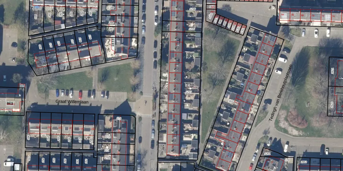 Het perceel waarop Graaf Willemlaan 62 staat heeft een oppervlakte van 1723 m². Dit is een zeer groot perceel. De perceeloppervlakte wordt geregistreerd door het Kadaster. Gedetailleerde informatie over de maten van dit perceel kunt u vinden in het rapport Kadastrale kaart met maatvoering van Graaf Willemlaan 62.