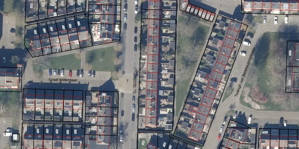 Het perceel waarop Graaf Willemlaan 64 staat heeft een oppervlakte van 1723 m². Dit is een zeer groot perceel. De perceeloppervlakte wordt geregistreerd door het Kadaster. Gedetailleerde informatie over de maten van dit perceel kunt u vinden in het rapport Kadastrale kaart met maatvoering van Graaf Willemlaan 64.