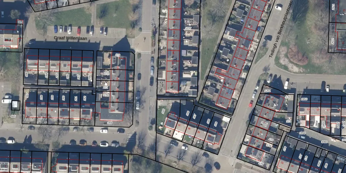 Het perceel waarop Graaf Willemlaan 74 staat heeft een oppervlakte van 1723 m². Dit is een zeer groot perceel. De perceeloppervlakte wordt geregistreerd door het Kadaster. Gedetailleerde informatie over de maten van dit perceel kunt u vinden in het rapport Kadastrale kaart met maatvoering van Graaf Willemlaan 74.