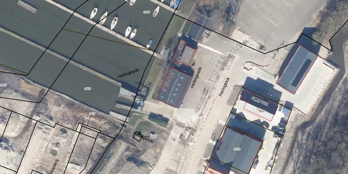 Het perceel waarop Hellingkade 107 staat heeft een oppervlakte van 38,4 ha. Dit is een zeer groot perceel. De perceeloppervlakte wordt geregistreerd door het Kadaster. Gedetailleerde informatie over de maten van dit perceel kunt u vinden in het rapport Kadastrale kaart met maatvoering van Hellingkade 107.