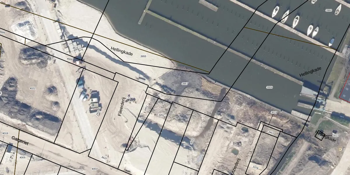 Het perceel waarop Hellingkade 14 staat heeft een oppervlakte van 1598 m². Dit is een zeer groot perceel. De perceeloppervlakte wordt geregistreerd door het Kadaster. Gedetailleerde informatie over de maten van dit perceel kunt u vinden in het rapport Kadastrale kaart met maatvoering van Hellingkade 14.
