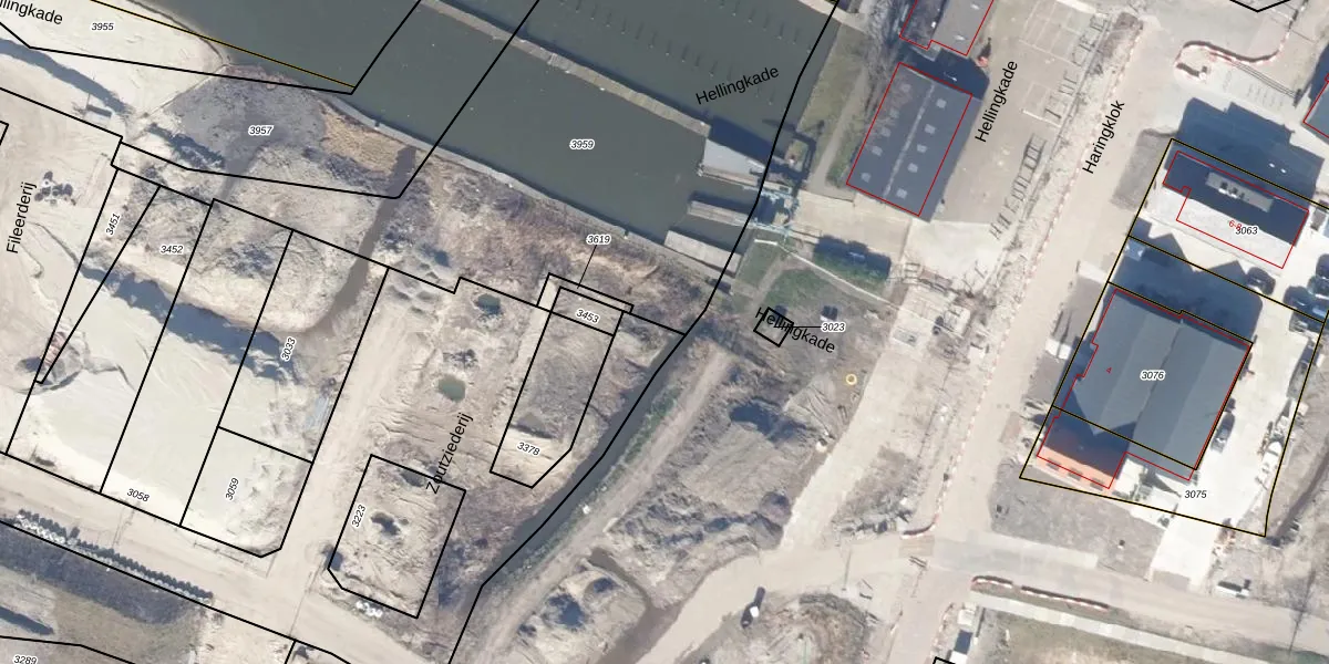 Het perceel waarop Hellingkade 40 staat heeft een oppervlakte van 2659 m². Dit is een zeer groot perceel. De perceeloppervlakte wordt geregistreerd door het Kadaster. Gedetailleerde informatie over de maten van dit perceel kunt u vinden in het rapport Kadastrale kaart met maatvoering van Hellingkade 40.