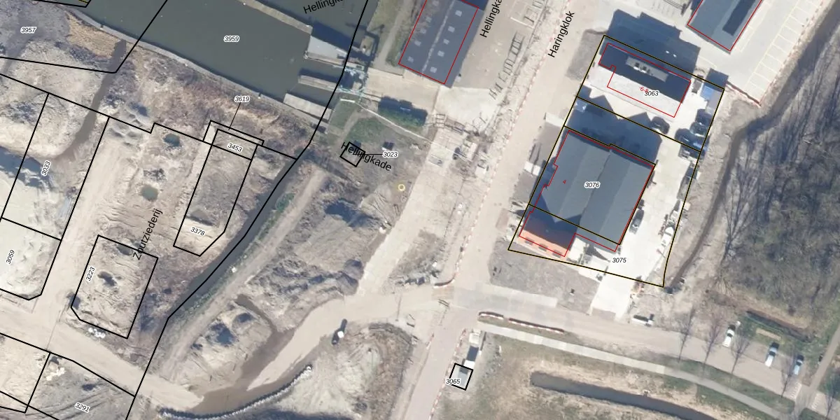 Het perceel waarop Hellingkade 60 staat heeft een oppervlakte van 38,4 ha. Dit is een zeer groot perceel. De perceeloppervlakte wordt geregistreerd door het Kadaster. Gedetailleerde informatie over de maten van dit perceel kunt u vinden in het rapport Kadastrale kaart met maatvoering van Hellingkade 60.
