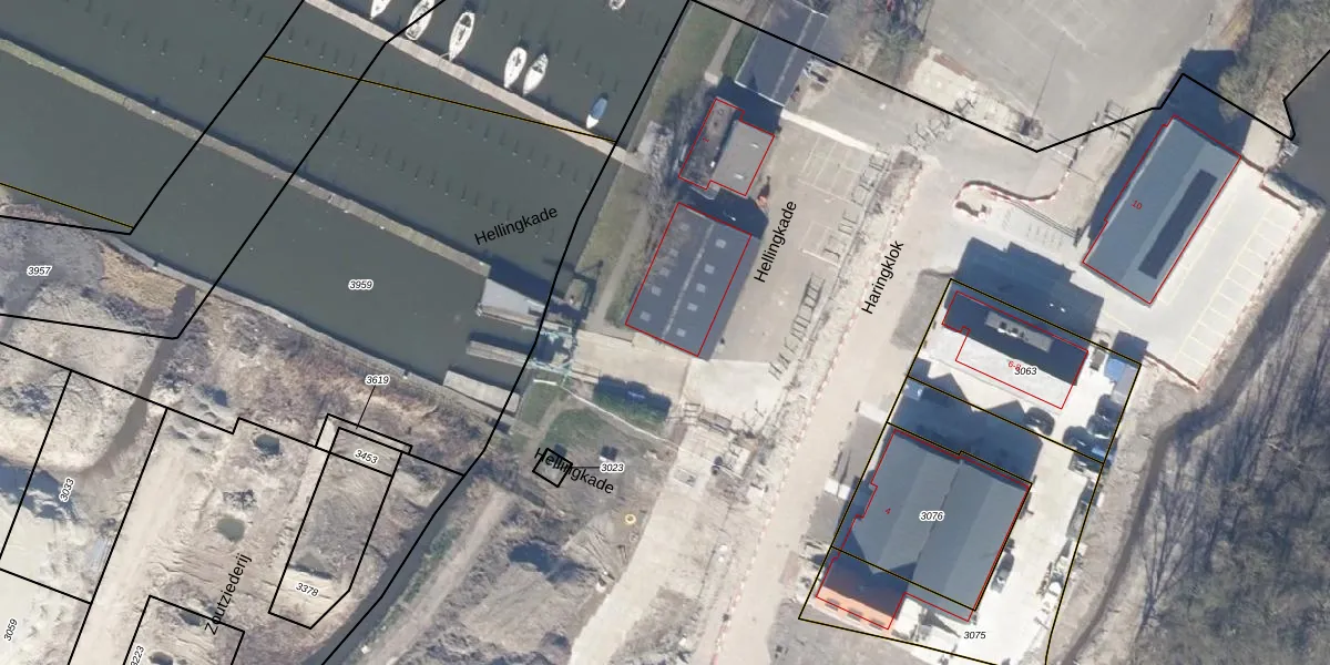 Het perceel waarop Hellingkade 69 staat heeft een oppervlakte van 38,4 ha. Dit is een zeer groot perceel. De perceeloppervlakte wordt geregistreerd door het Kadaster. Gedetailleerde informatie over de maten van dit perceel kunt u vinden in het rapport Kadastrale kaart met maatvoering van Hellingkade 69.