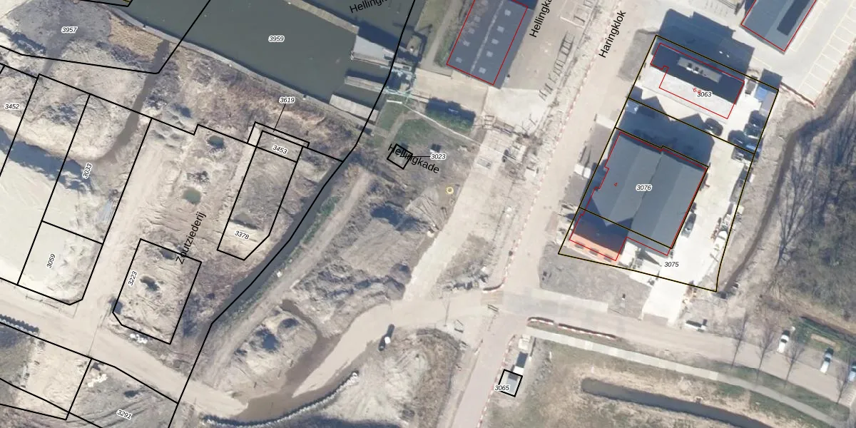 Het perceel waarop Hellingkade 76 staat heeft een oppervlakte van 38,4 ha. Dit is een zeer groot perceel. De perceeloppervlakte wordt geregistreerd door het Kadaster. Gedetailleerde informatie over de maten van dit perceel kunt u vinden in het rapport Kadastrale kaart met maatvoering van Hellingkade 76.