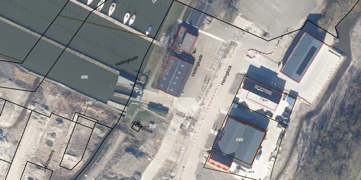 Het perceel waarop Hellingkade 83 staat heeft een oppervlakte van 38,4 ha. Dit is een zeer groot perceel. De perceeloppervlakte wordt geregistreerd door het Kadaster. Gedetailleerde informatie over de maten van dit perceel kunt u vinden in het rapport Kadastrale kaart met maatvoering van Hellingkade 83.