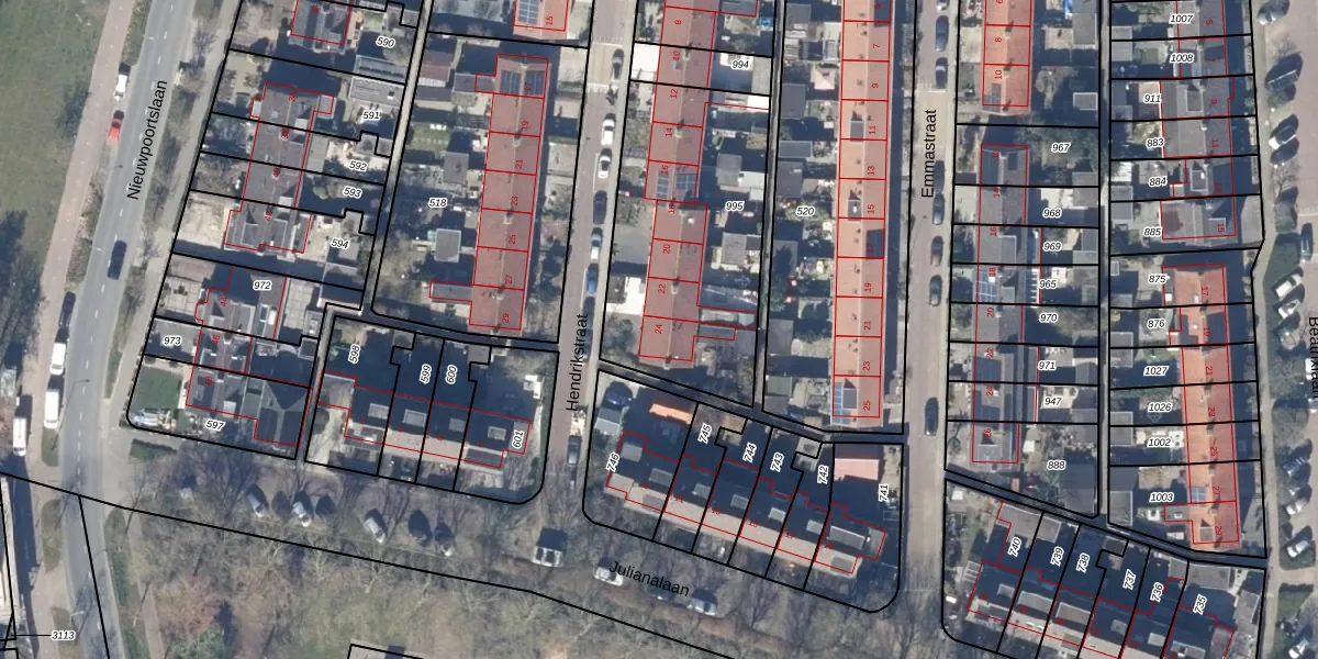 Het perceel waarop Hendrikstraat 24 staat heeft een oppervlakte van 1033 m². Dit is een zeer groot perceel. De perceeloppervlakte wordt geregistreerd door het Kadaster. Gedetailleerde informatie over de maten van dit perceel kunt u vinden in het rapport Kadastrale kaart met maatvoering van Hendrikstraat 24.
