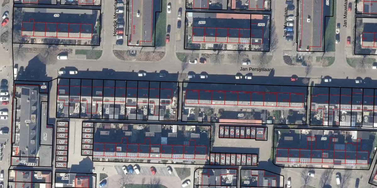 Het perceel waarop Jan Persijnlaan 33 staat heeft een oppervlakte van 1373 m². Dit is een zeer groot perceel. De perceeloppervlakte wordt geregistreerd door het Kadaster. Gedetailleerde informatie over de maten van dit perceel kunt u vinden in het rapport Kadastrale kaart met maatvoering van Jan Persijnlaan 33.