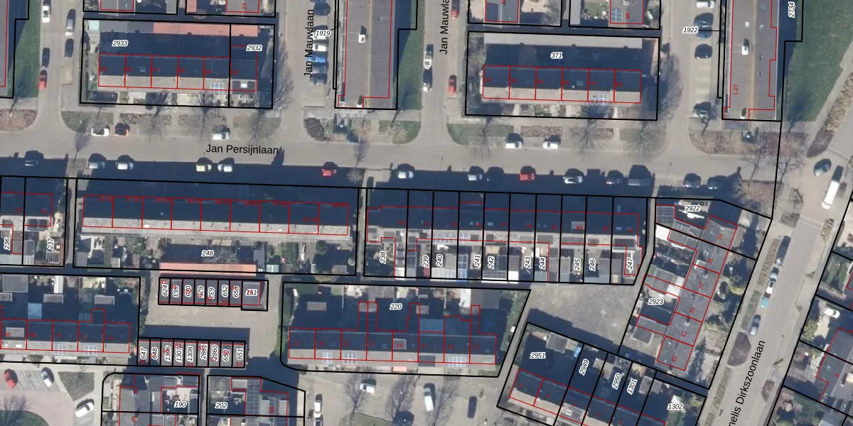 Gebruik de zoekbalk of klik op een perceel voor informatie over de adressen binnen dit perceel.
