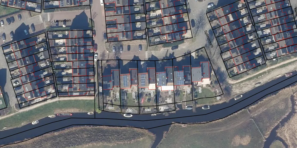 Het perceel waarop Lameroen 46 staat heeft een oppervlakte van 378 m². Dit is een groot perceel. De perceeloppervlakte wordt geregistreerd door het Kadaster. Gedetailleerde informatie over de maten van dit perceel kunt u vinden in het rapport Kadastrale kaart met maatvoering van Lameroen 46.