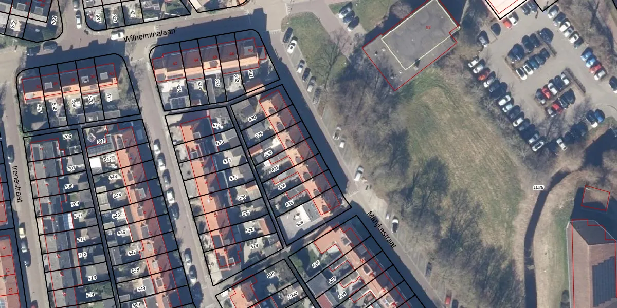 Het perceel waarop Marijkestraat 19 staat heeft een oppervlakte van 126 m². Dit is een middelgroot perceel. De perceeloppervlakte wordt geregistreerd door het Kadaster. Gedetailleerde informatie over de maten van dit perceel kunt u vinden in het rapport Kadastrale kaart met maatvoering van Marijkestraat 19.