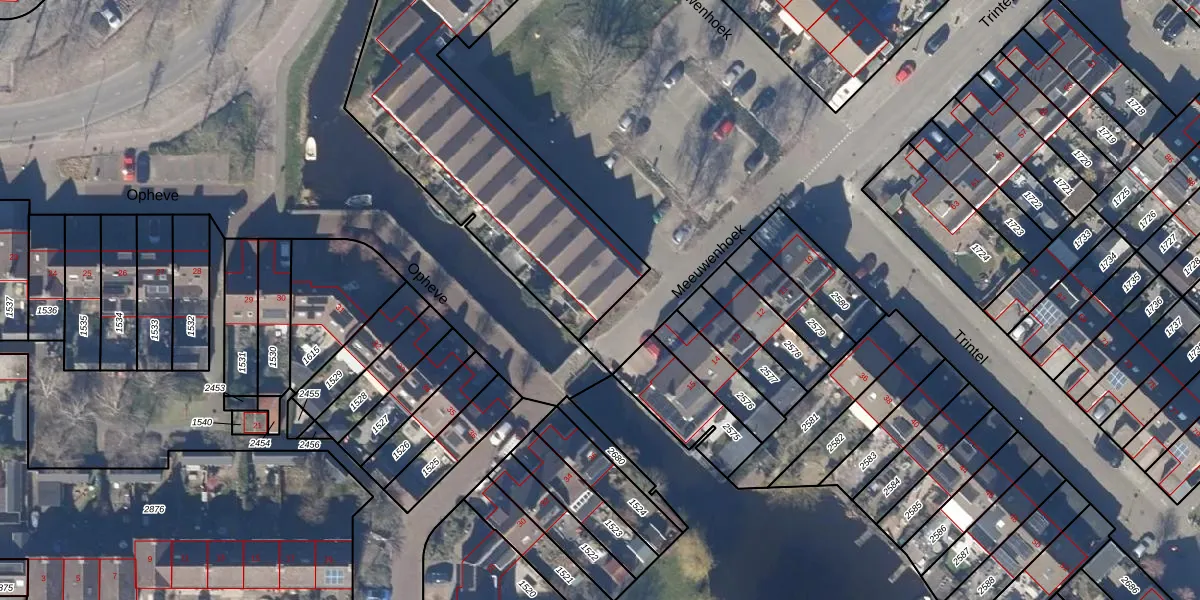 Het perceel waarop Meeuwenhoek 17 staat heeft een oppervlakte van 1890 m². Dit is een zeer groot perceel. De perceeloppervlakte wordt geregistreerd door het Kadaster. Gedetailleerde informatie over de maten van dit perceel kunt u vinden in het rapport Kadastrale kaart met maatvoering van Meeuwenhoek 17.